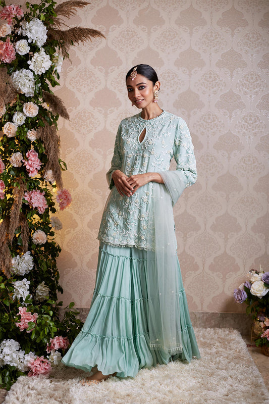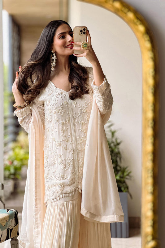 Celebrate the beauty of timeless ensembles, lovingly handcrafted by our skilled artisans with intricate details to embody the essence of India. We believe that true elegance lies in the smallest of details, hence, each stitch, each sequin hand-sewn is a testament to the richness of Indian traditions & craftsmanship woven into every creation for YOU.
