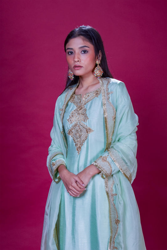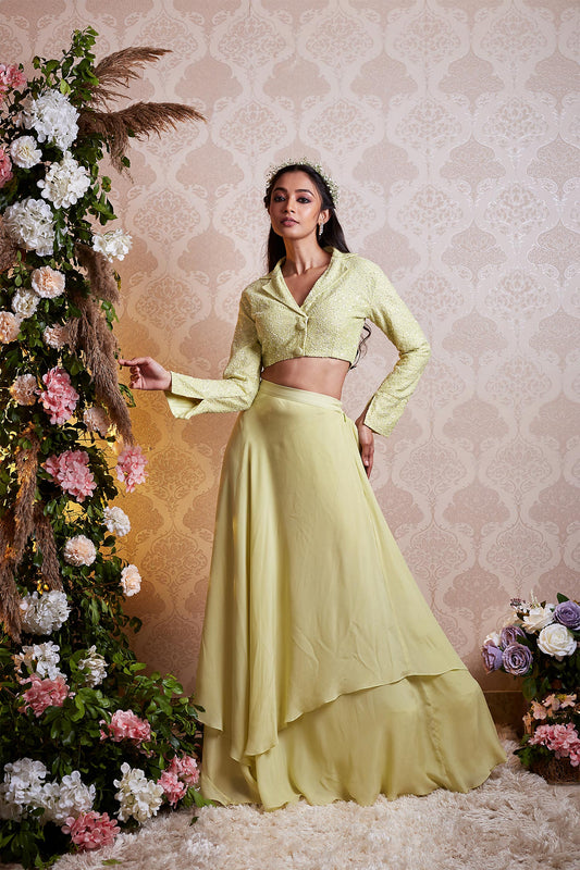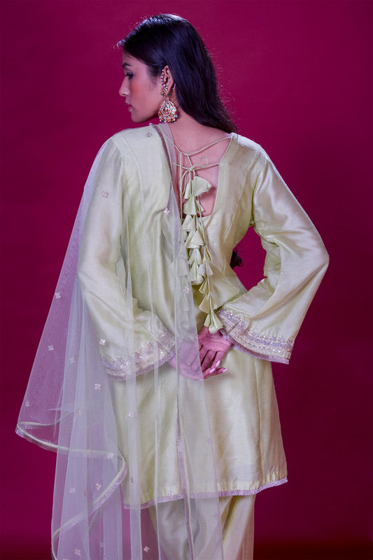 Aaira - Lime Green Short Kurta & Pakistani Salwaar
