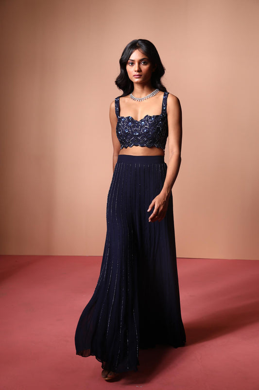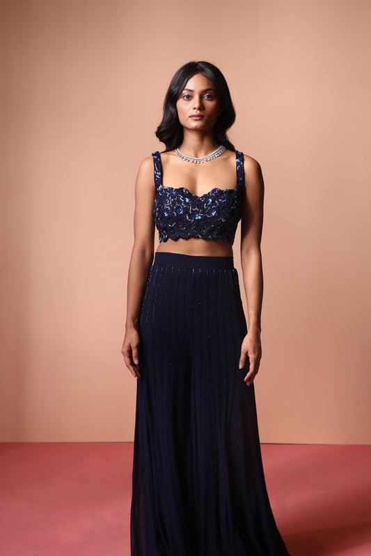 Alaia - Navy Blue Bustier, Organza Jacket & Palazzos