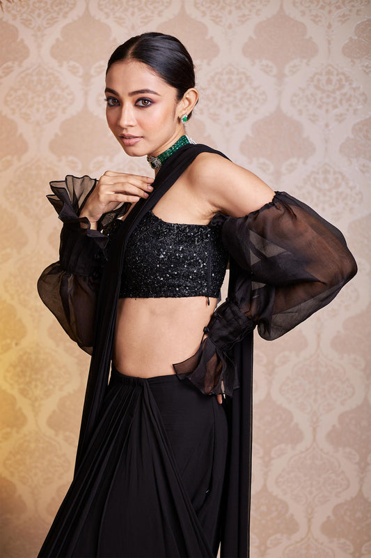 Alara - Black Pearl Hand-Embroidered Blazer & Pant Suit