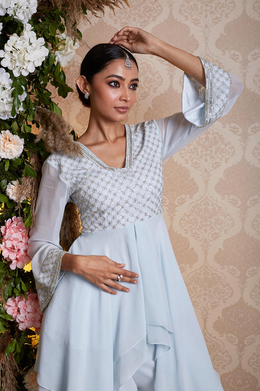 Alaysha - Powder Blue 2 Layer Asymmetrical Peplum & Palazzos