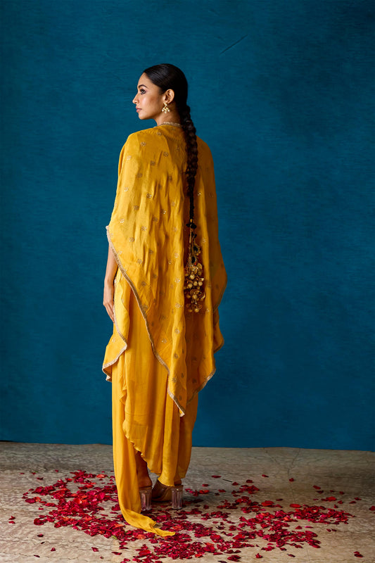 Aayah - Mustard Yellow High-Low Anarkali with Ombre Dupatta