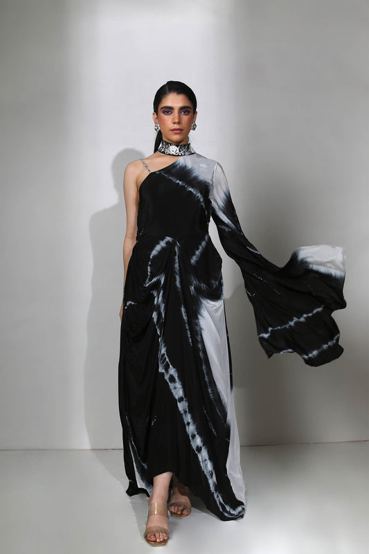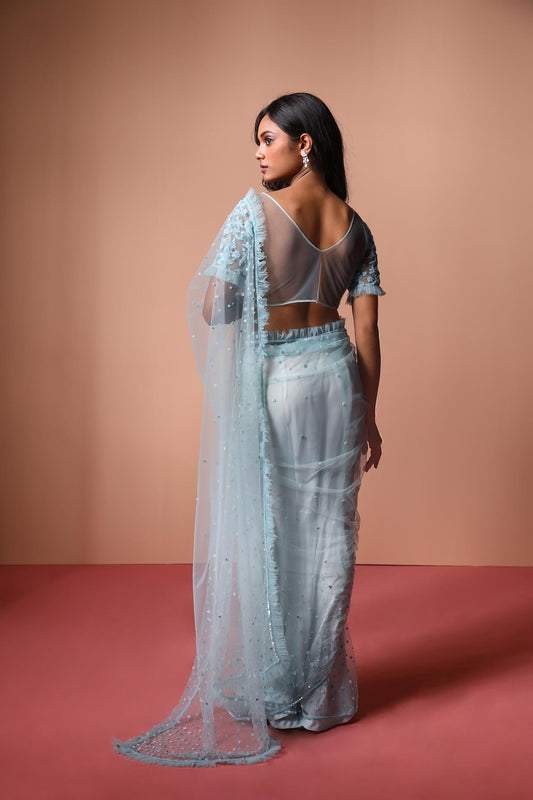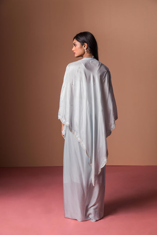 Aliza - Pastel Blue 3 Corner Cape Blouse & Draped Skirt