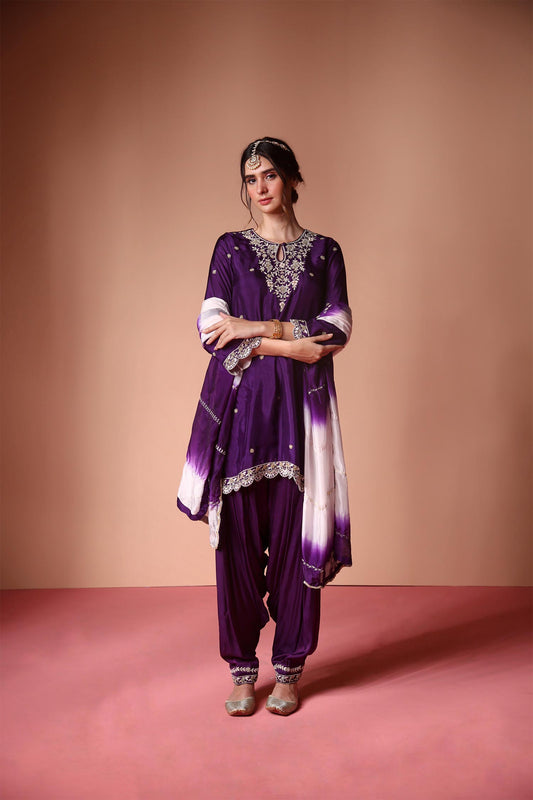 Itsya - Purple Kurta & Salwaar Set with Leheriya Dupatta