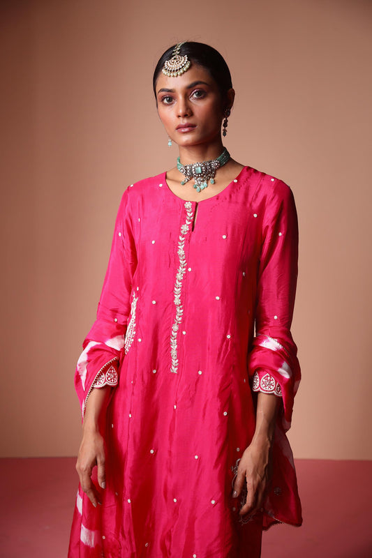 Asmairaa - Magenta Pink and Ivory Kurta Set