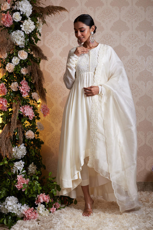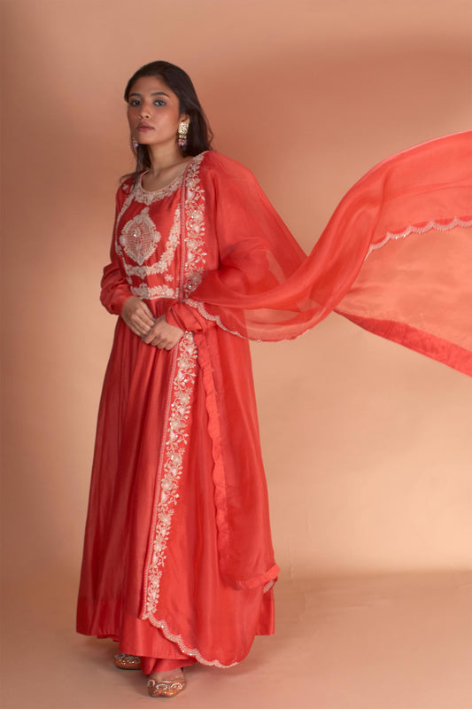 Asira - Magenta High-Low Anarkali with Ombre Dupatta
