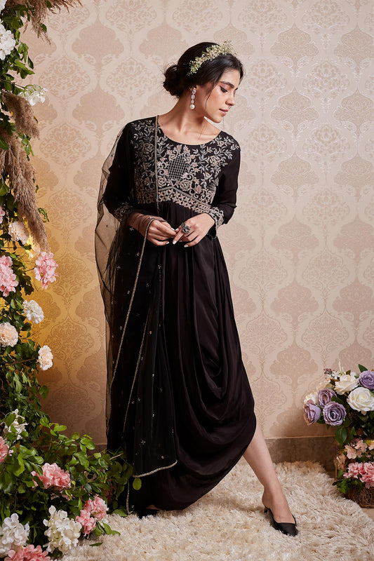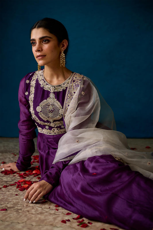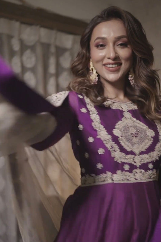 Amyra - Dark Purple Anarkali with Zardozi Work