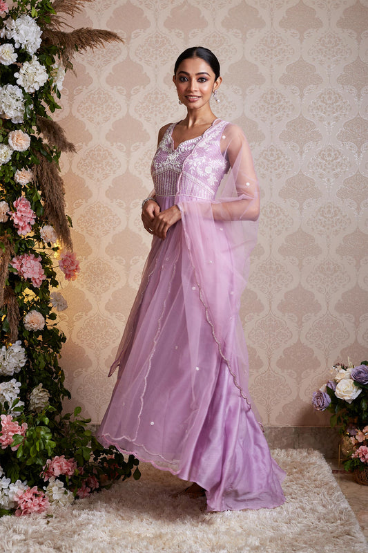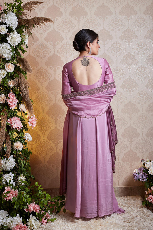 Anya - Light Purple Draped Anarkali with Ombre Dupatta