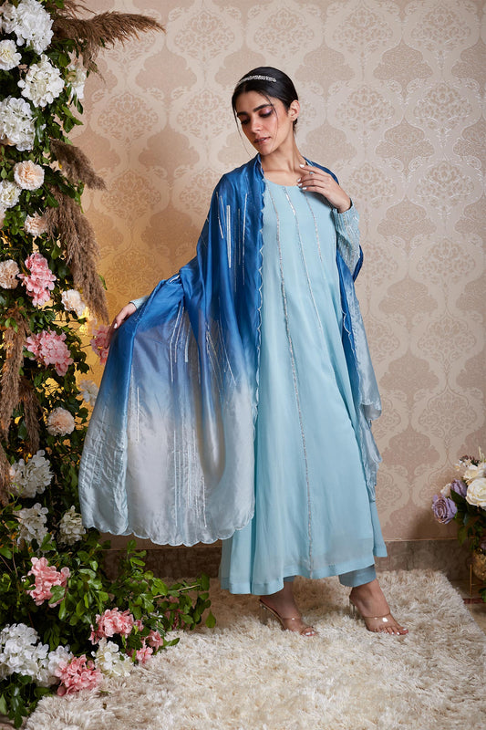 Ekra - Light Blue Anarkali with Ombre Dupatta