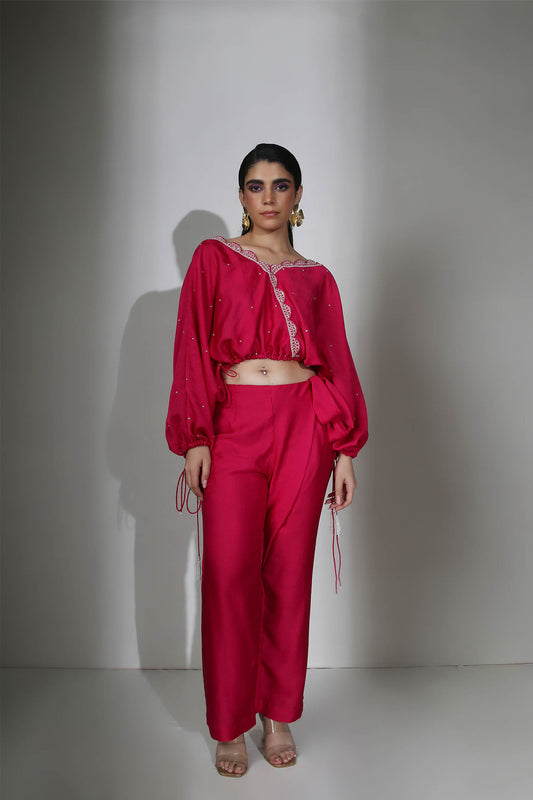 Ember - Magenta Drawstring Top & Flared Pants With Side Waist-Tie