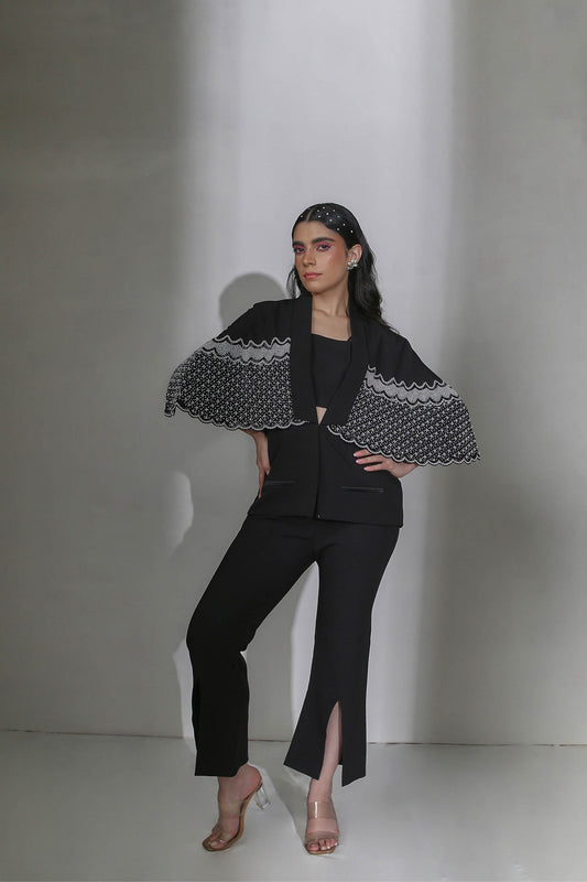 Alara - Black Pearl Hand-Embroidered Blazer & Pant Suit