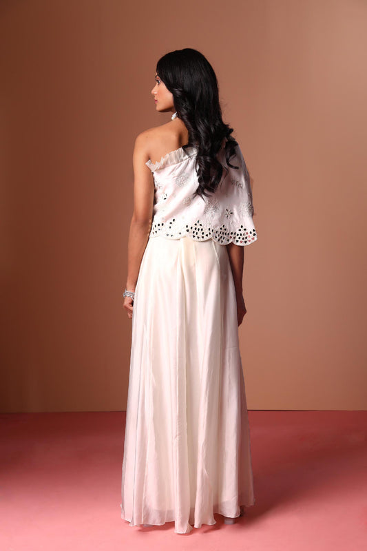 Inara - Ivory One Shoulder Cape & Flared Palazzos