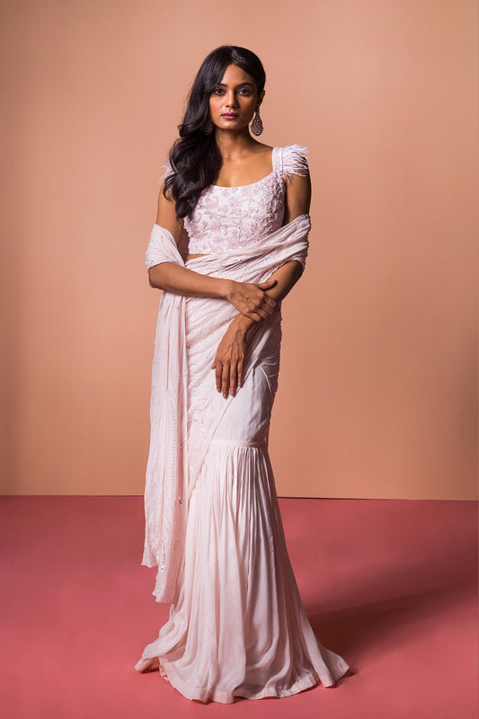 Jasmin Old Rose Pink Pre-Draped Saree & Blouse