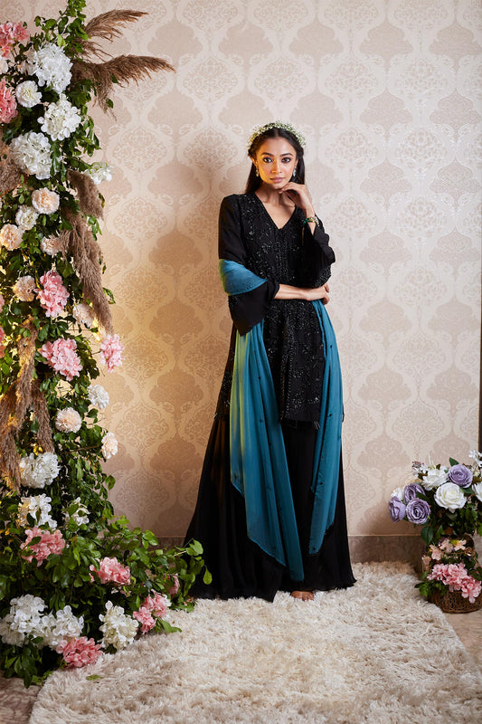 Inaya - Black Cutdana Shirt & Sharara